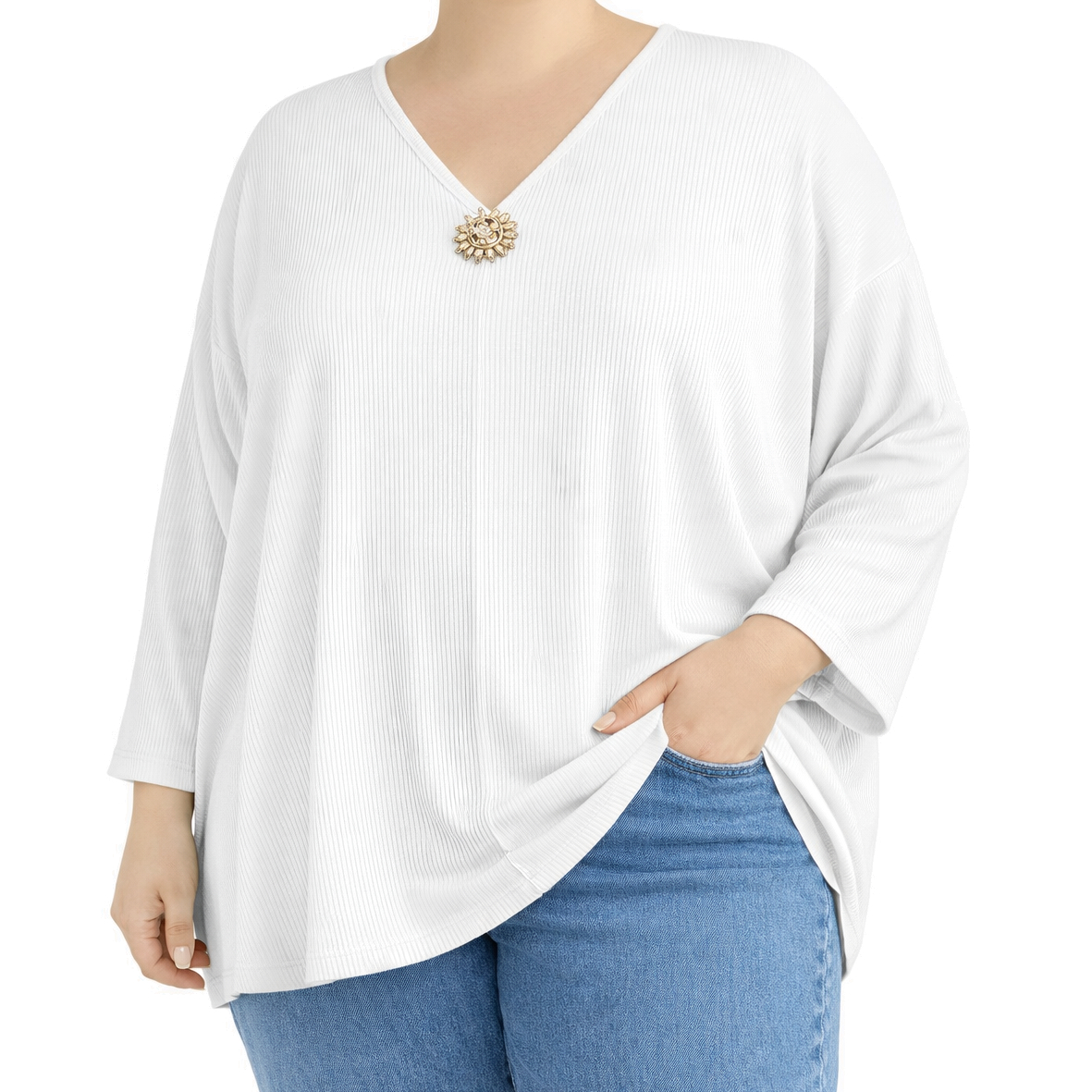 Camisola malha plissada c/ alfinete