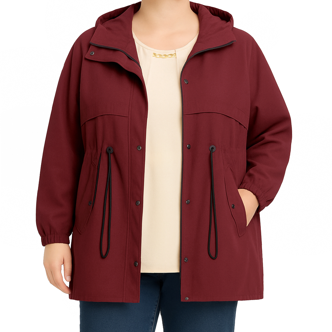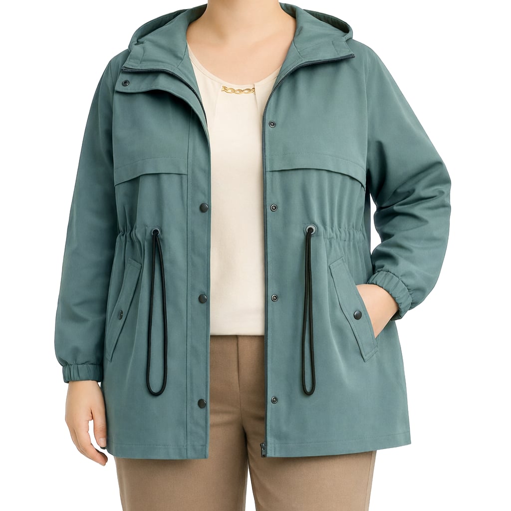 Casaco cintura ajustável c/ capuz quantidade