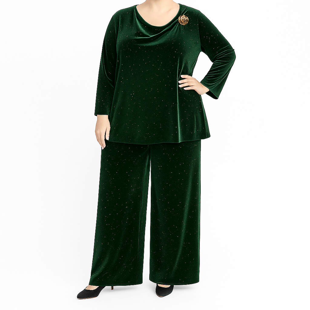 Conjunto drapeado c/ purpurinas